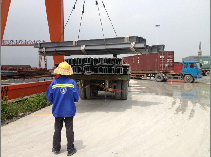 2)散貨船 特殊情況,某些大型建筑構(gòu)件尺寸超過(guò)了40'HQ 和40'開(kāi)頂柜的內(nèi)部尺寸,此時(shí)我們建議客戶將大型建筑構(gòu)件使用大卡車(chē),平板拖車(chē)等由工廠吊運(yùn)到碼頭,然后由碼頭吊運(yùn)上大船,因此客戶在訂艙時(shí)要向船東訂散船艙位。我們將配合客戶,提供準(zhǔn)確的貨物結(jié)構(gòu)尺寸和重量,以便訂到合理的艙位。