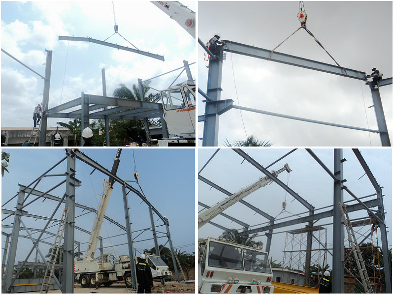 Garner workshop is located in African countries. This workshop is designed with a 10 ton crane, which is mainly used for production lifting. The installation of the workshop needs to install the steel column first, then the crane, and finally the roof, so as not to affect the installation of the crane. This workshop is installed under the guidance of engineers sent by Shengbang Steel Structure Co., Ltd. the installation time of this workshop is only one month. Here are some installation pictures of the building: